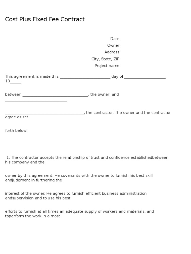 Cost Plus Fixed Fee Contract Templates pdfFiller