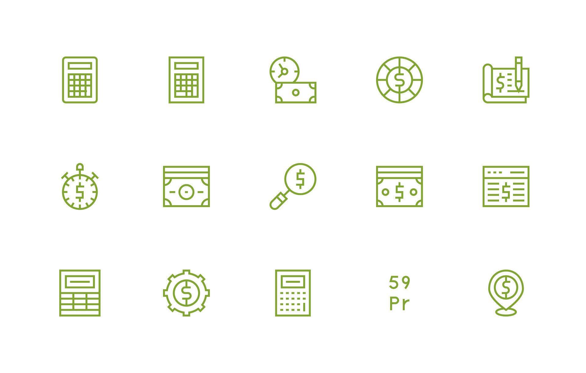 Cost Design Icons featuring 15 in Regular Line Style All Device