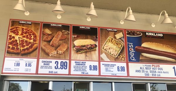 Menu at Costco Food Court restaurant Fullerton