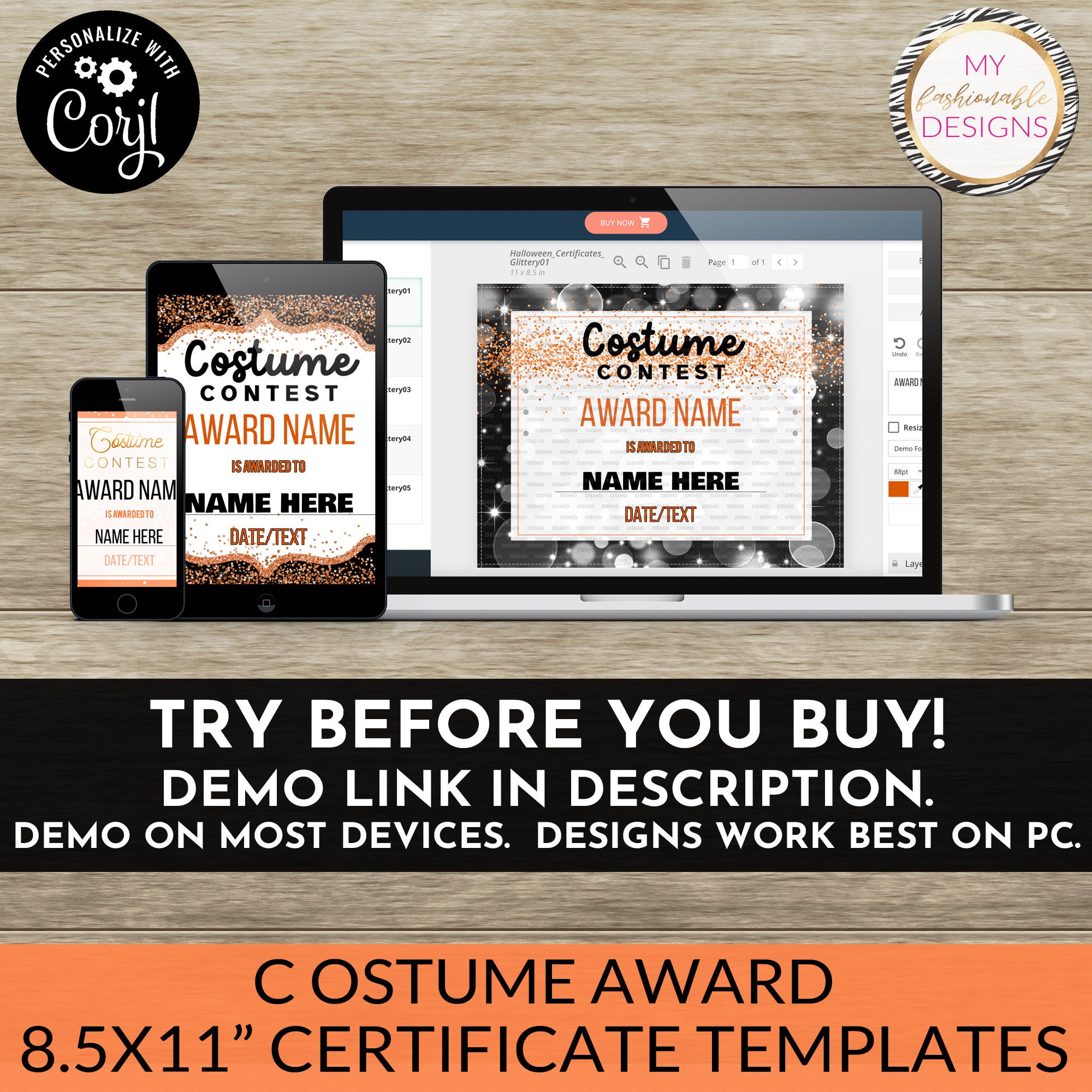 Costume Contest Certificate Set 5 Designs 8 5x11 Etsy