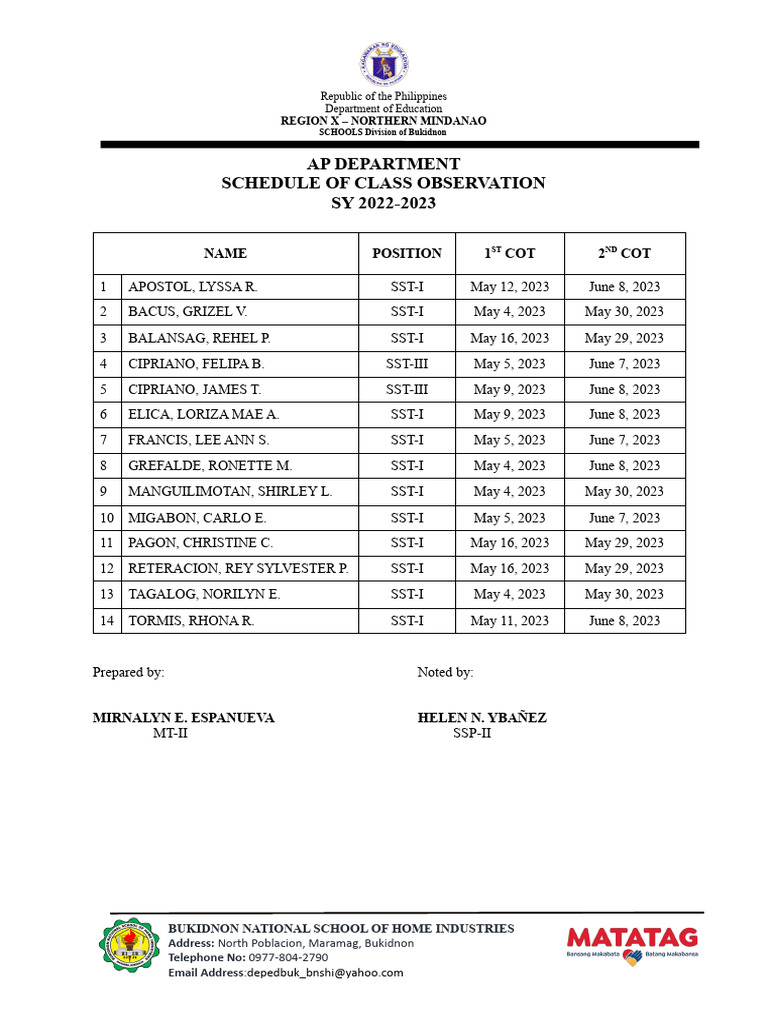 COT Editable 2022 2023 PDF Learning Teachers
