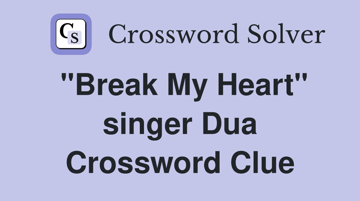 quot Break My Heart quot singer Dua Crossword Clue Answers Crossword Solver