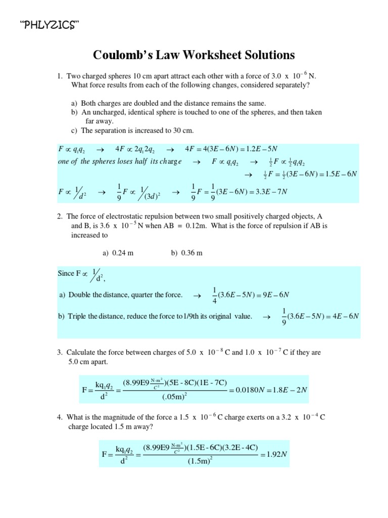 Coulombs Law Worksheet Answers 1