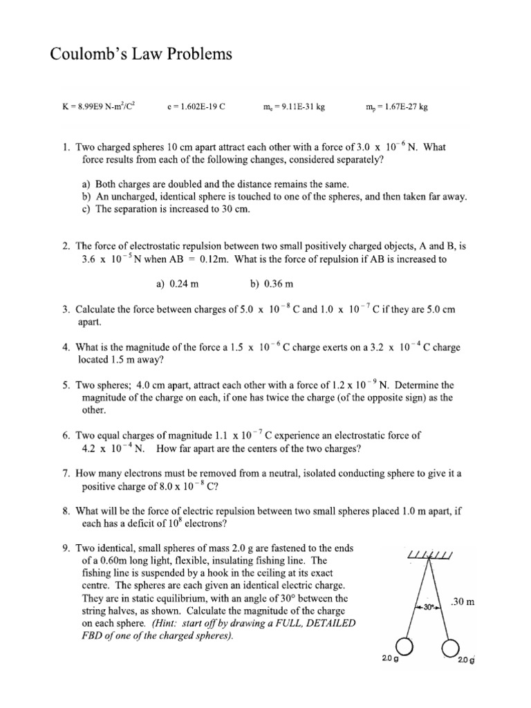 Here are some of the images for Coulombs Law Worksheet Answer Key that we found in our website database.