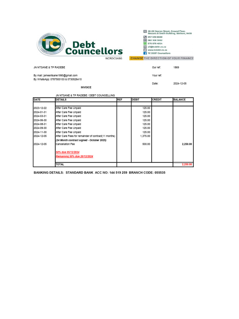 Debt Counselling Invoice Summary PDF