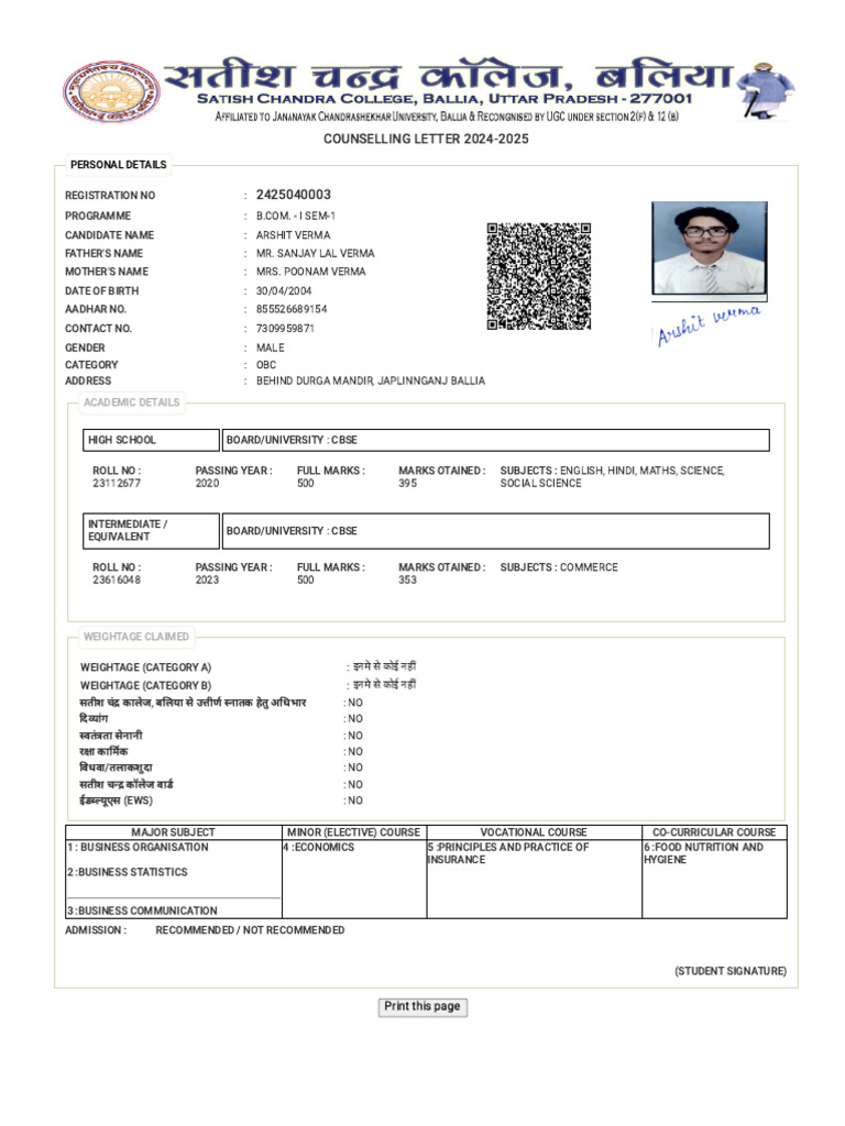 Counselling Letter SC College PDF Educational Stages