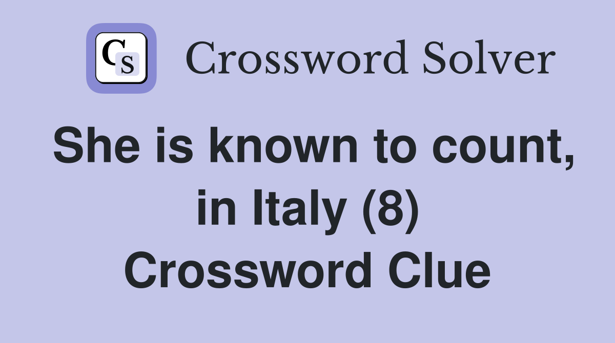 She is known to count in Italy (8) Crossword Clue Answers