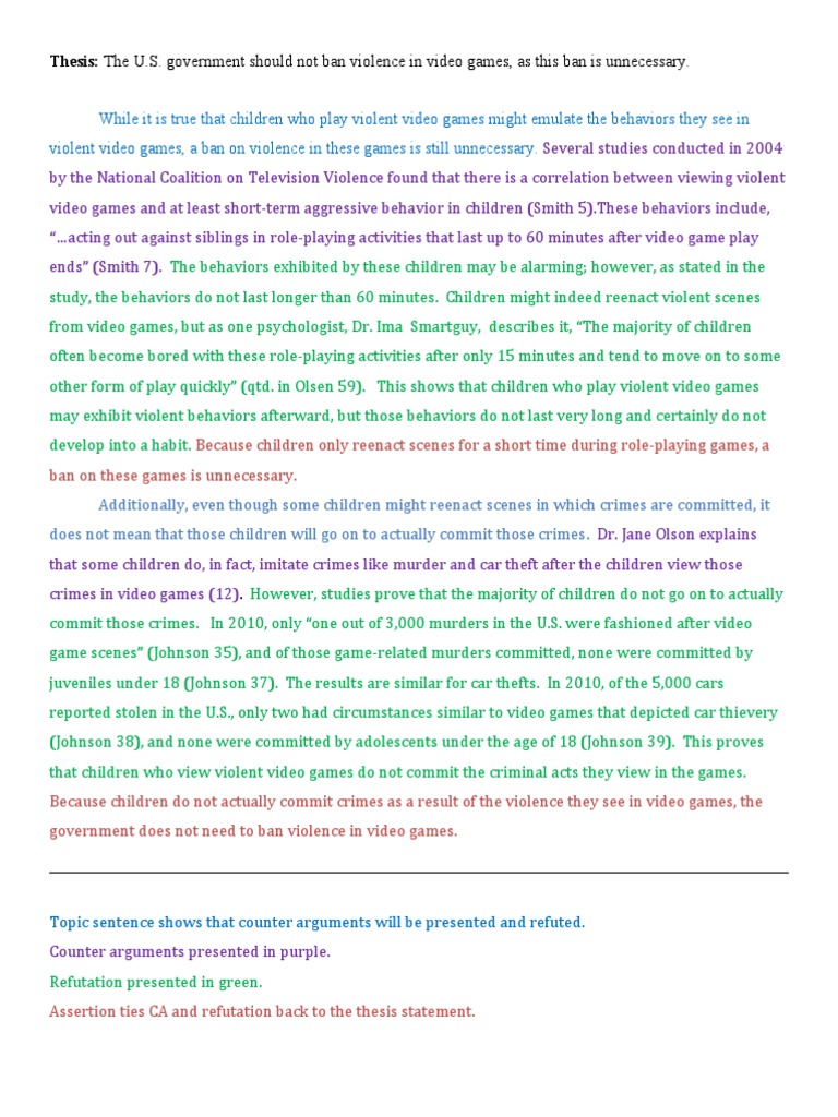 Counter Argument Paragraph Example PDF Video Games Crime Violence