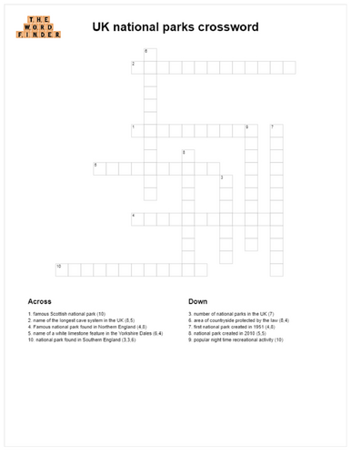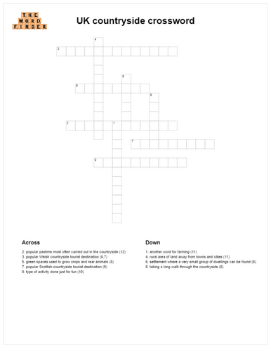 UK countryside crossword Teaching Resources