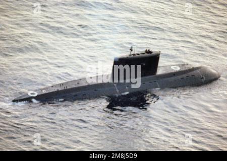 A starboard view of the Russian Kilo class patrol submarine underway