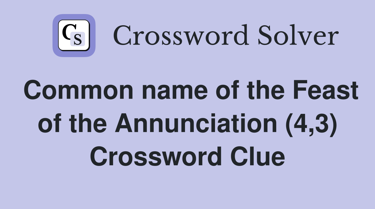 Common name of the Feast of the Annunciation (4 3) Crossword Clue
