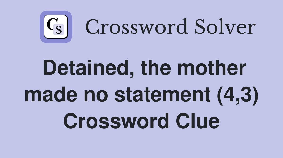 Detained the mother made no statement (4 3) Crossword Clue Answers