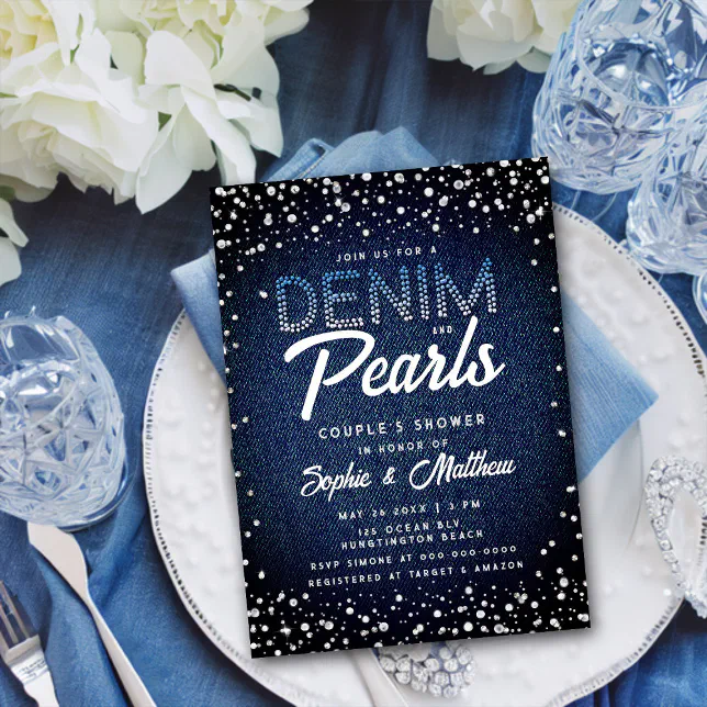 Denim Diamonds Pearls Blue Elegant Couple Shower Invitation Zazzle