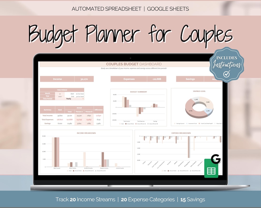COUPLES Budget Planner Google Sheets Budget Spreadsheet Etsy