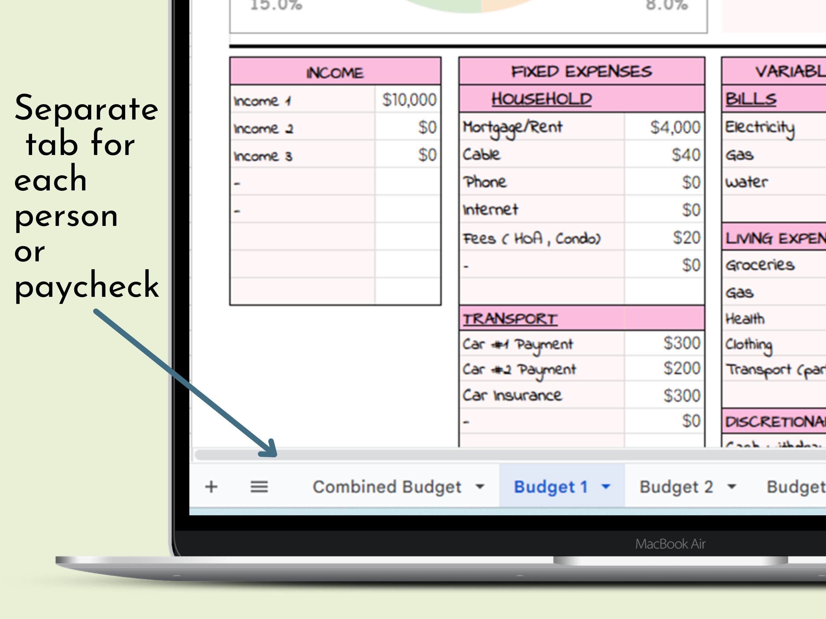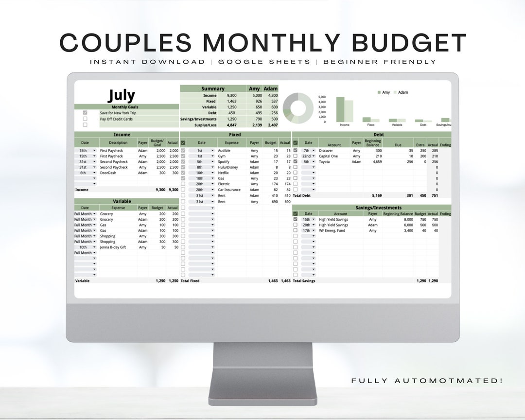 Couples Budget Google Sheets Spreadsheet Monthly Budget Template