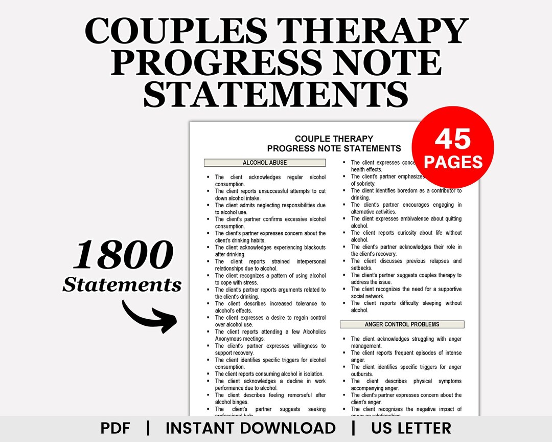 Couples Therapy Progress Note Statements Couple Therapy Therapy