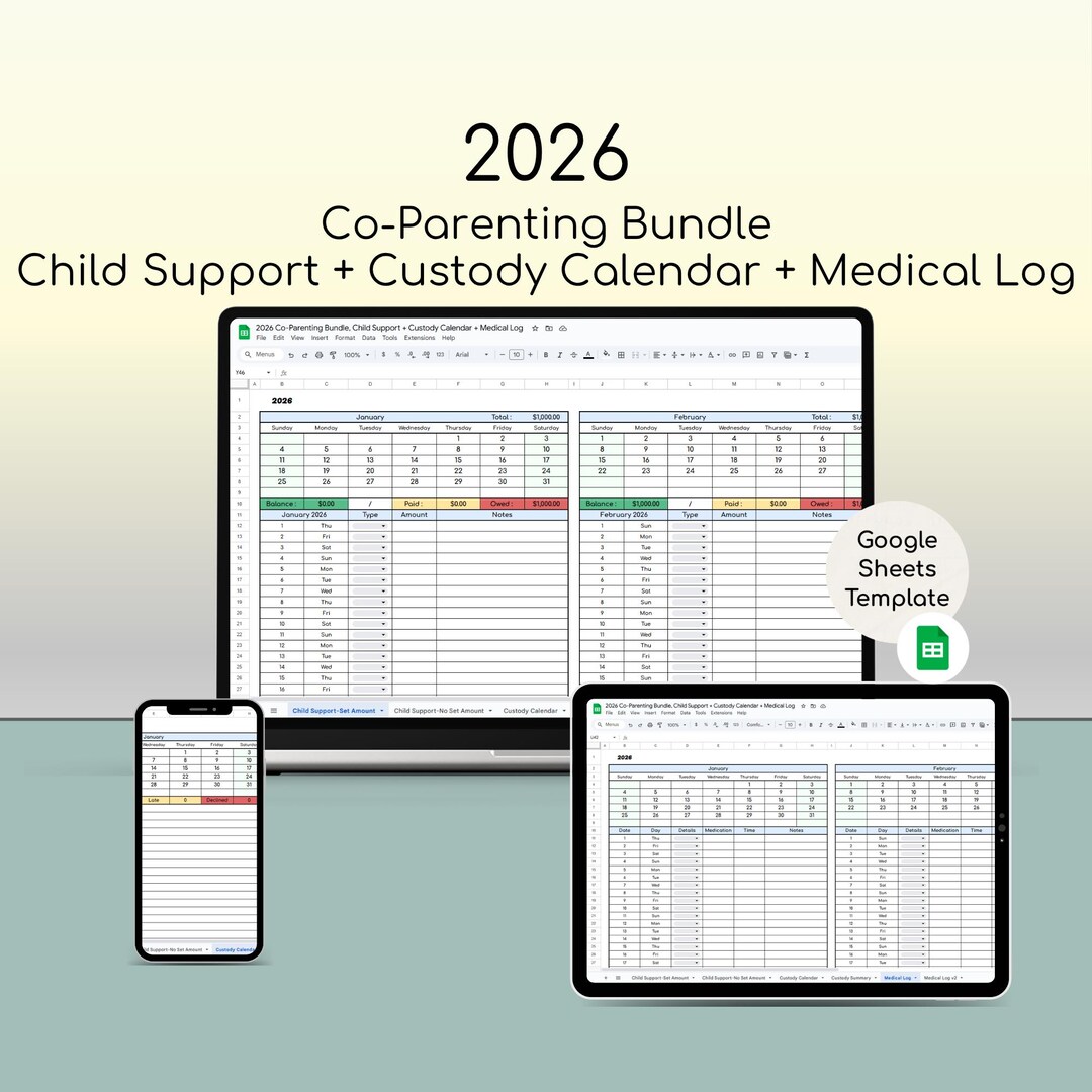 2026 Co parenting Bundle Child Support Tracker Custody Calendar