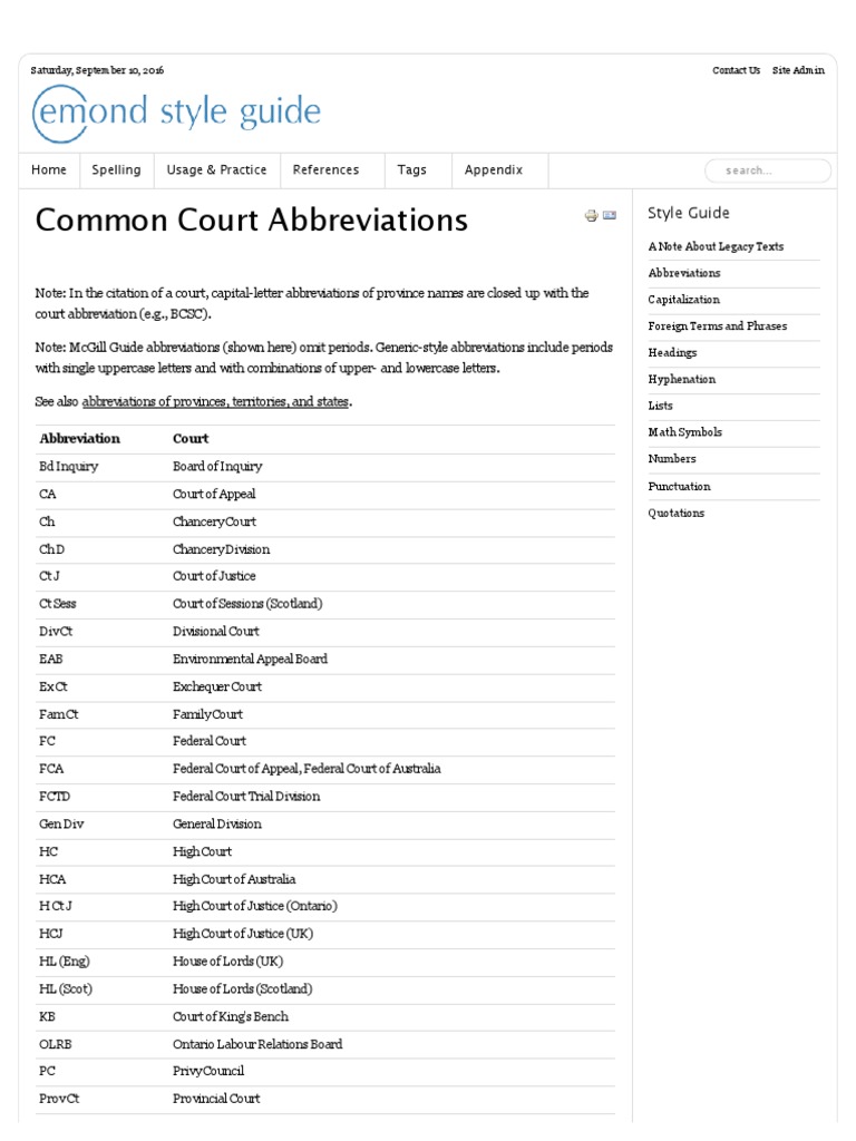 Common Court Abbreviations PDF Court System Of Canada Judge