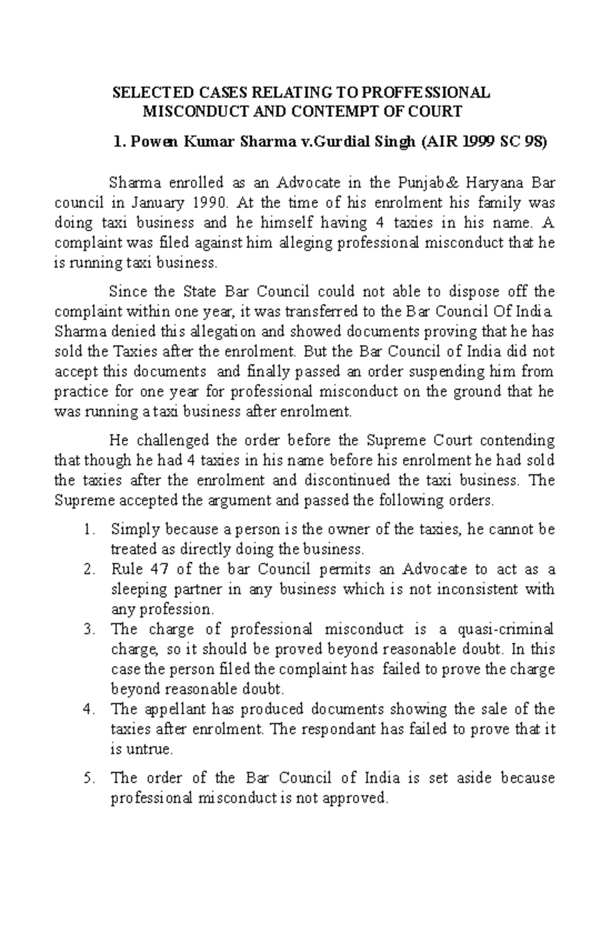SC Selected cases Professional Ethics SELECTED CASES RELATING TO