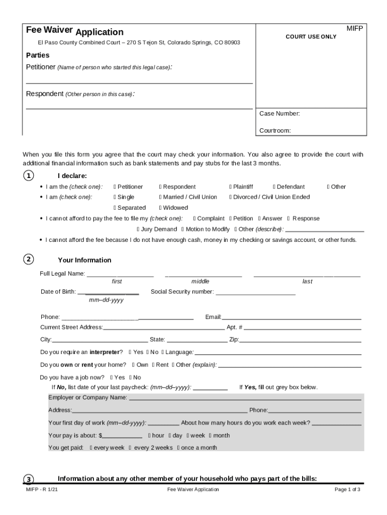 Fee Waiver Application CO Courts Doc Template pdfFiller