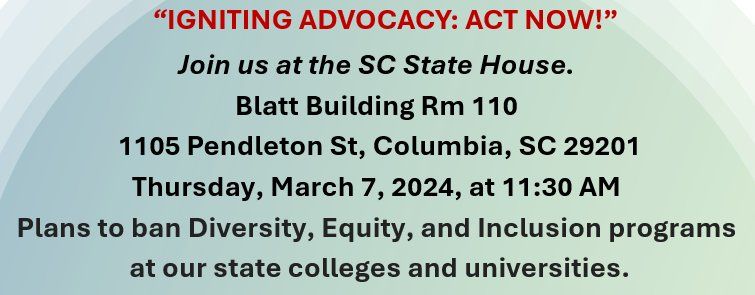 First Thursday Advocacy Event IGNITING ADVOCACY: ACT NOW SC State