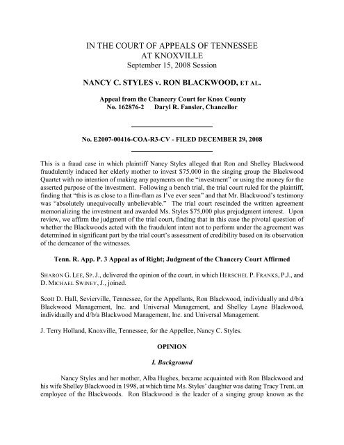 Tennessee Court of Appeals Case Records Search Knox TN
