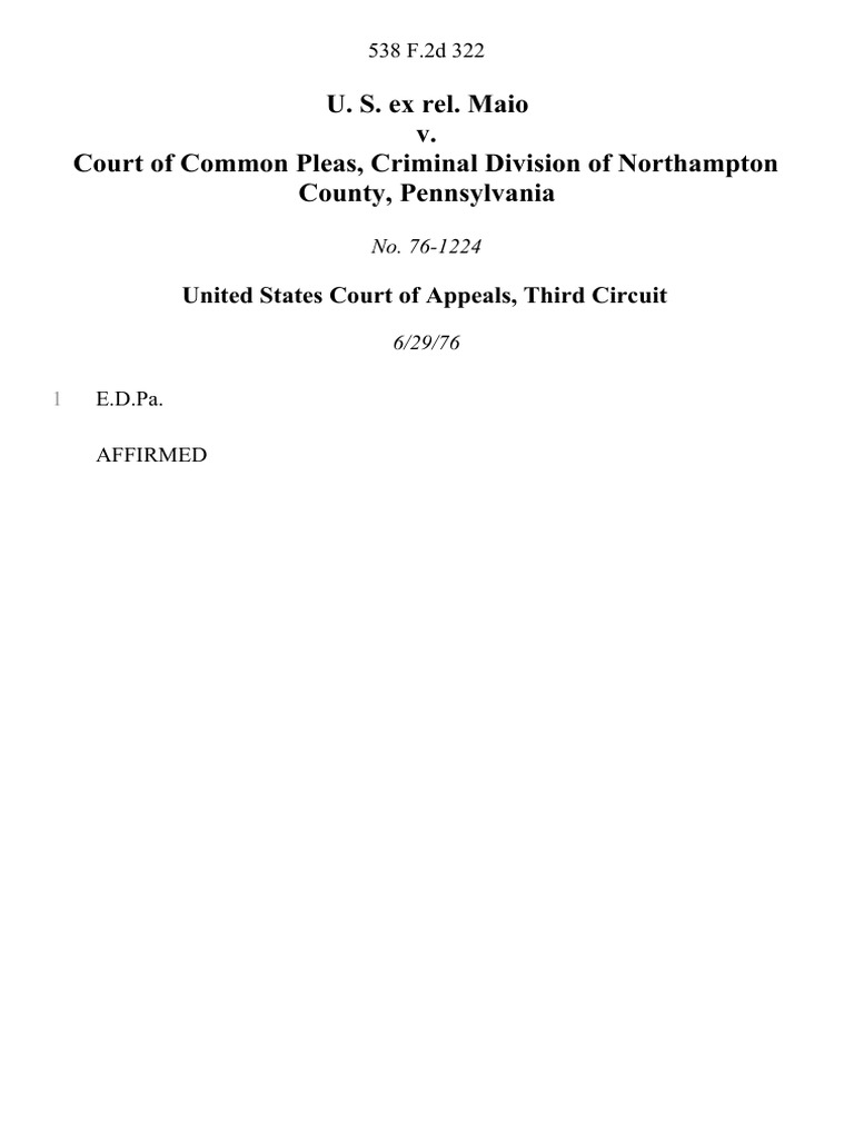 U S Ex Rel Maio v Court of Common Pleas Criminal Division of