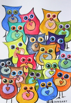 Solve quot Lots of cute owls quot original watercolour painting by marjansart
