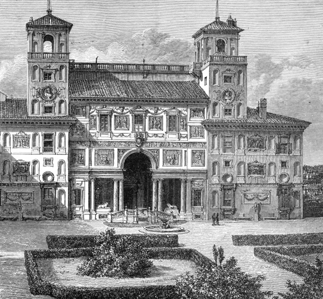 The beautiful view of Medici court in Italian Renaissance garden of