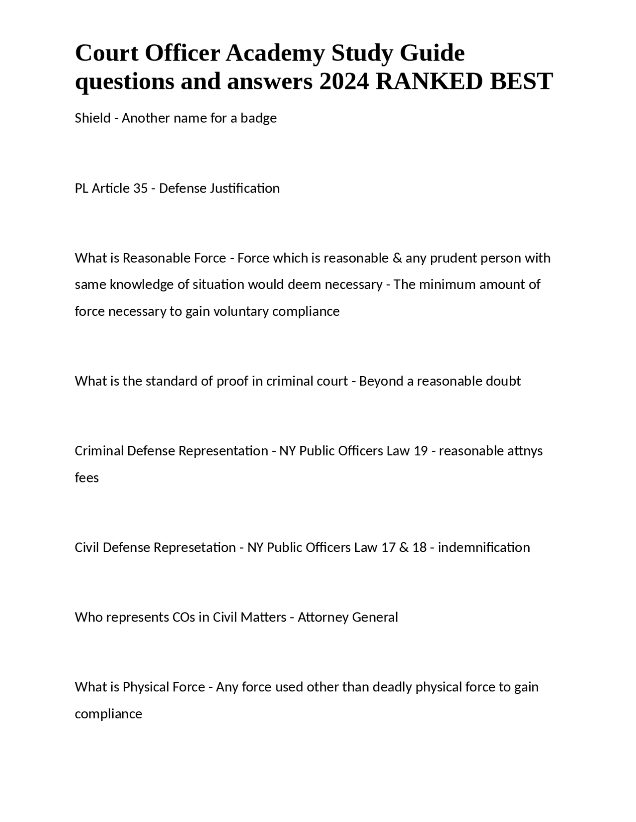Court Officer Academy Study Guide questions and answers 2024 RANKED