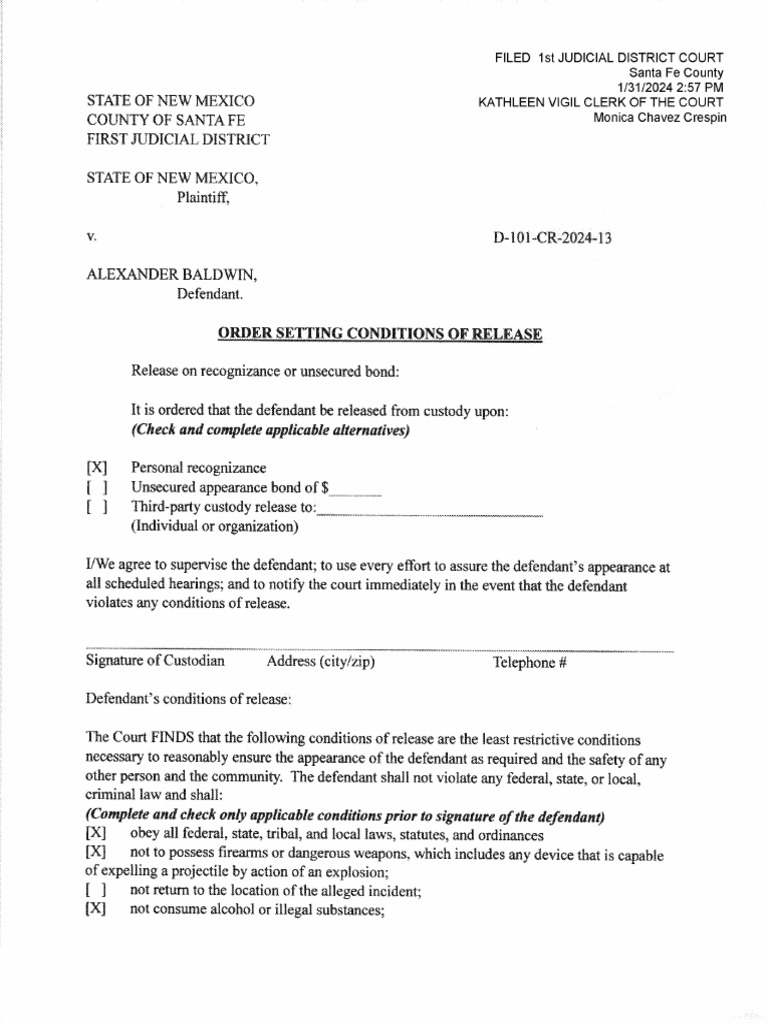 Order Setting Conditions of Release PDF