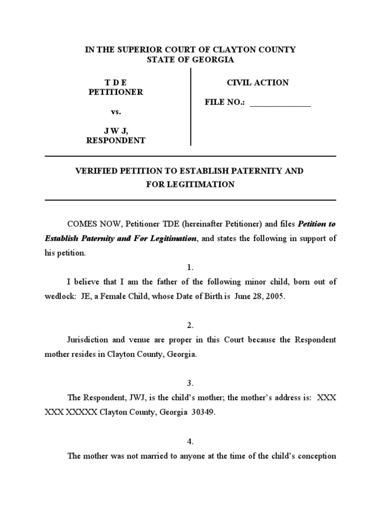Petition To Establish Paternity and for Legitimation Parent