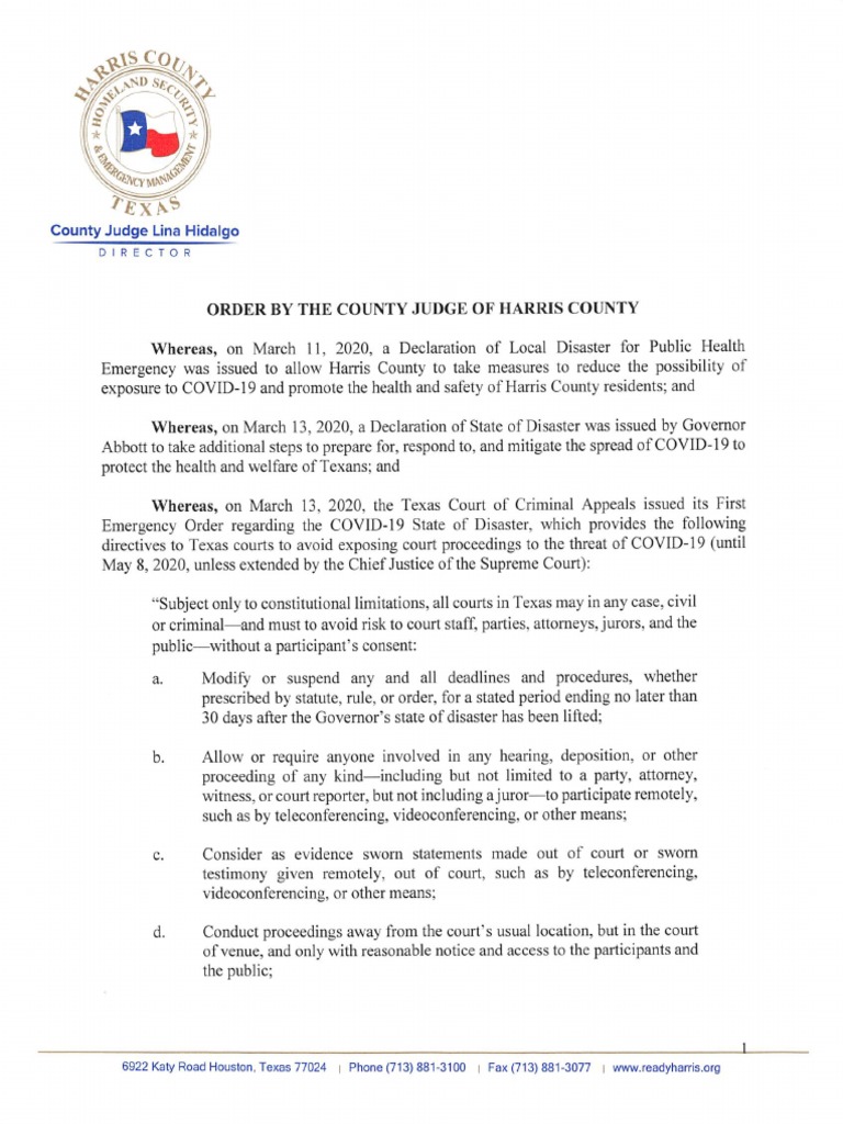 Harris County Jail Order of Release PDF
