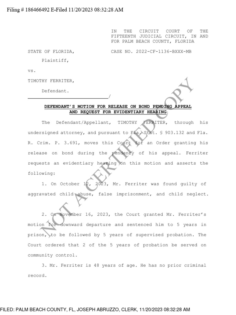 Ferriter Motion For Post Sentence Release PDF Bail Appeal