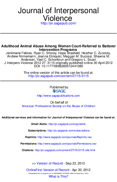 (PDF) Adulthood Animal Abuse Among Women Court Referred to Batterer