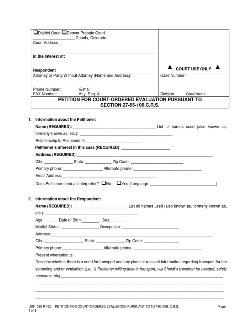 Petition For Court Ordered Evaluation PDF Mental Health Mental