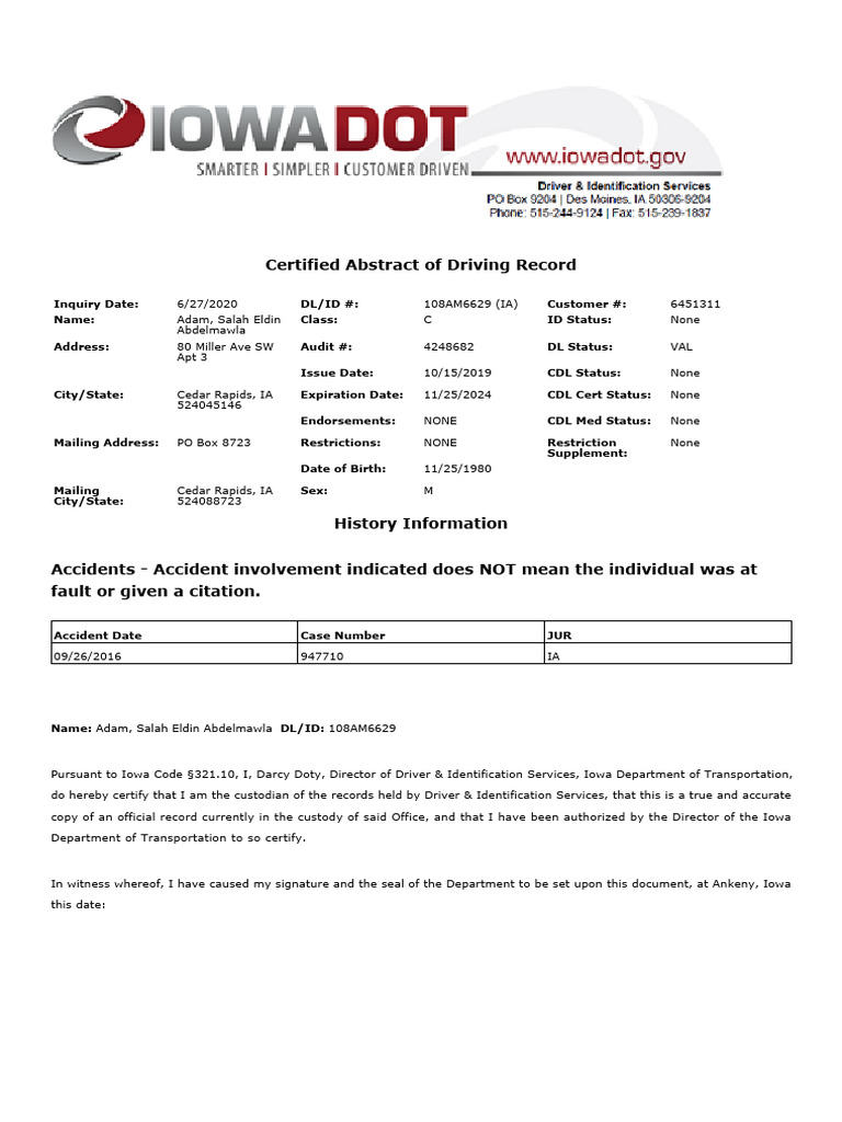 Certified Abstract of Driving Record PDF