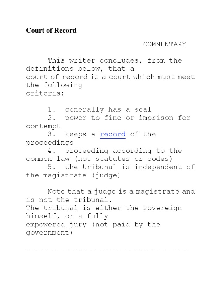 Court of Record PDF Magistrate Common Law