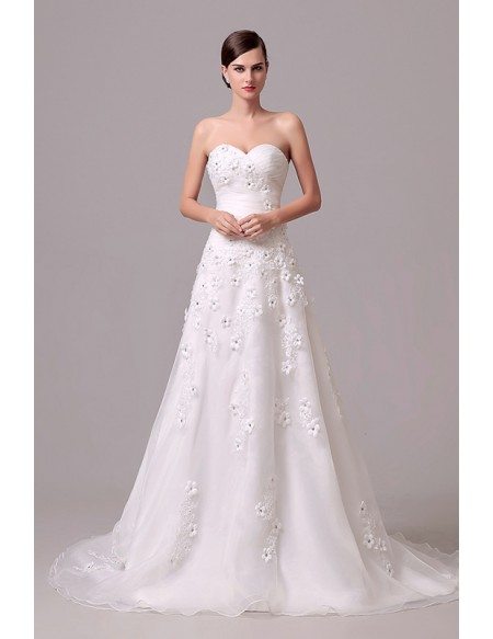 A Line Sweetheart Appliques with Court Train Wedding Dress BL Dress