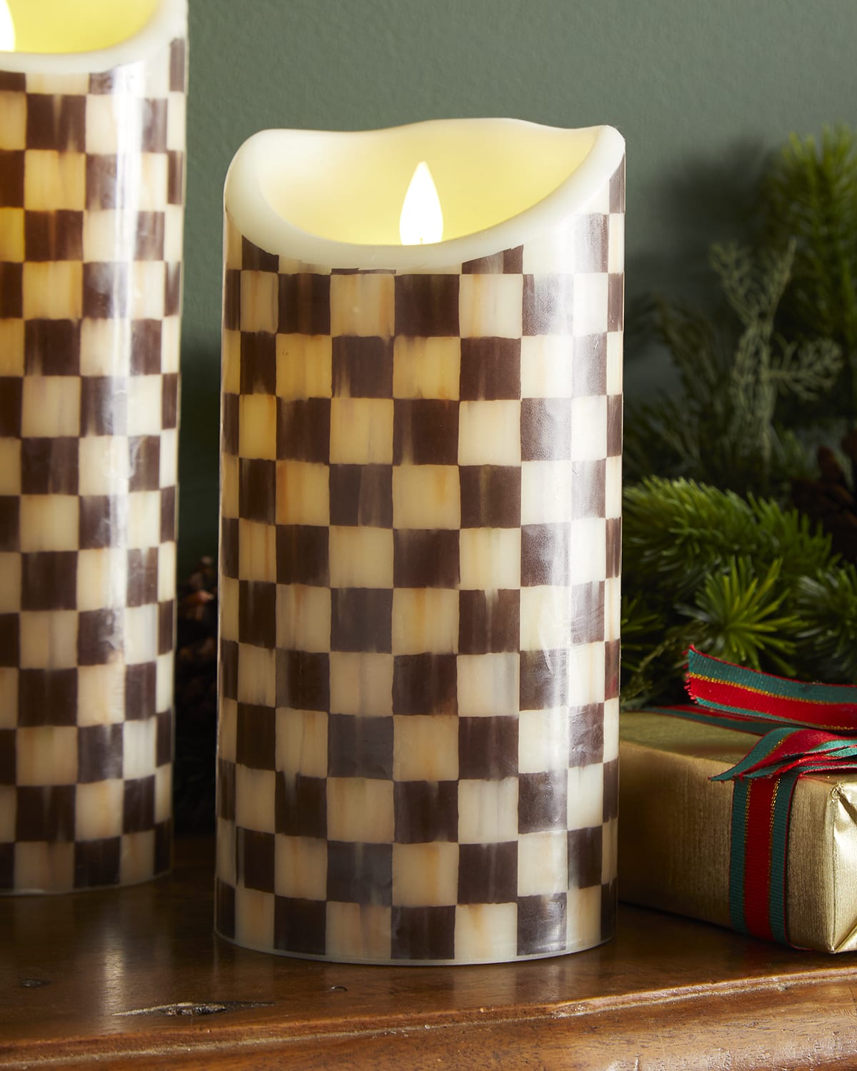 MacKenzie Childs Driftwood Check 6 quot Pillar Candle Horchow