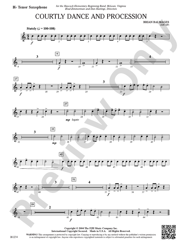 Courtly Dance and Procession: B flat Tenor Saxophone: B flat Tenor