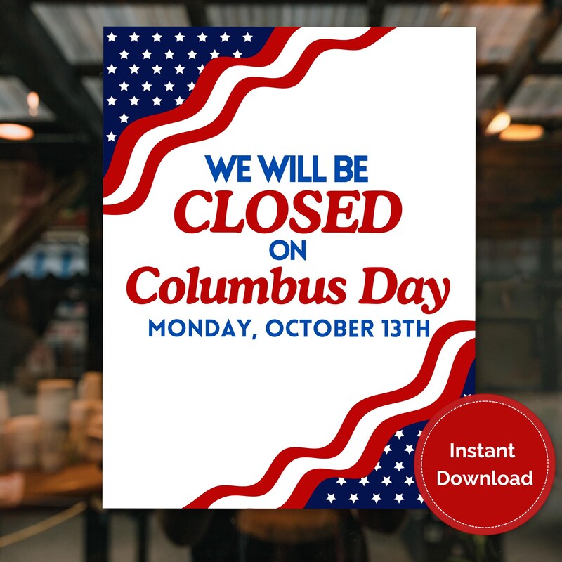 Closed On Columbus Day Sign: Printable Templates (Free PDF Downloads)