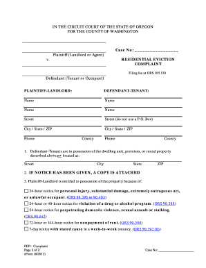 Fillable Online courts oregon Residential eviction information for