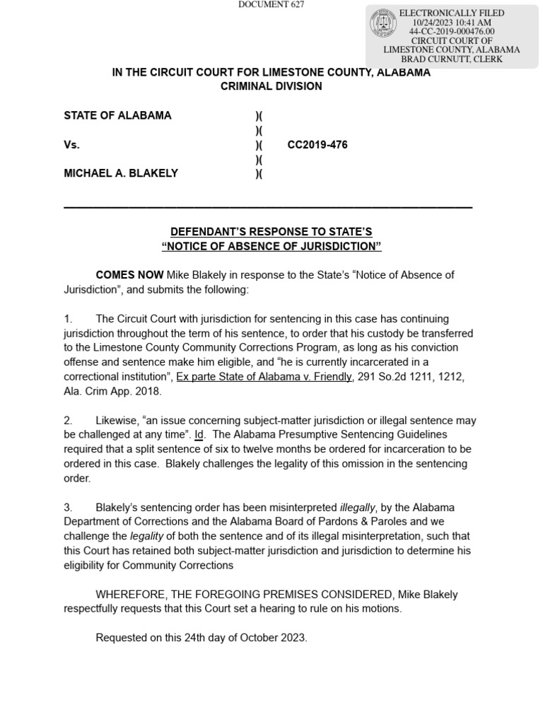 Mike Blakely Defendant Response To State #39 s Notice of Absence of