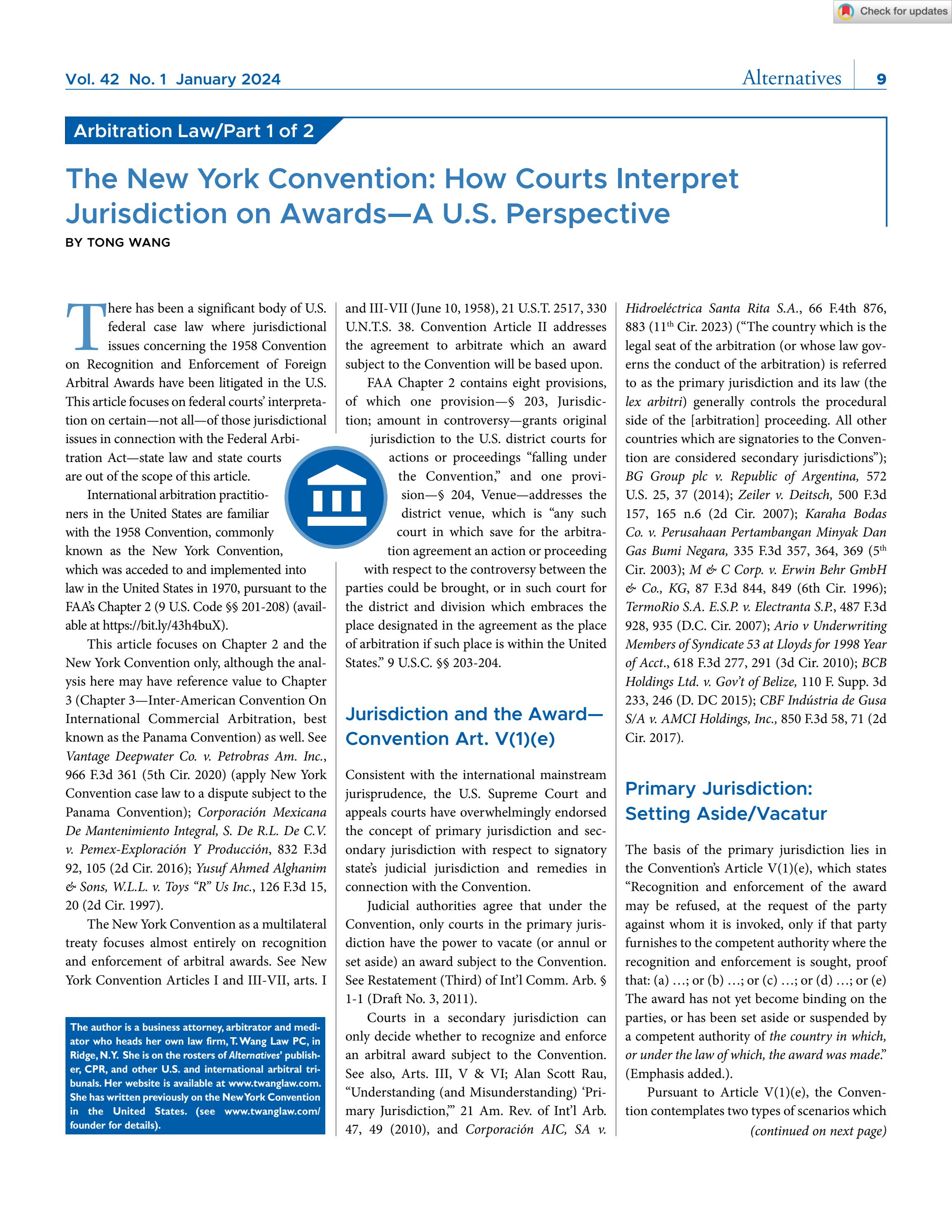 The New York Convention: How Courts Interpret Jurisdiction on Awards A