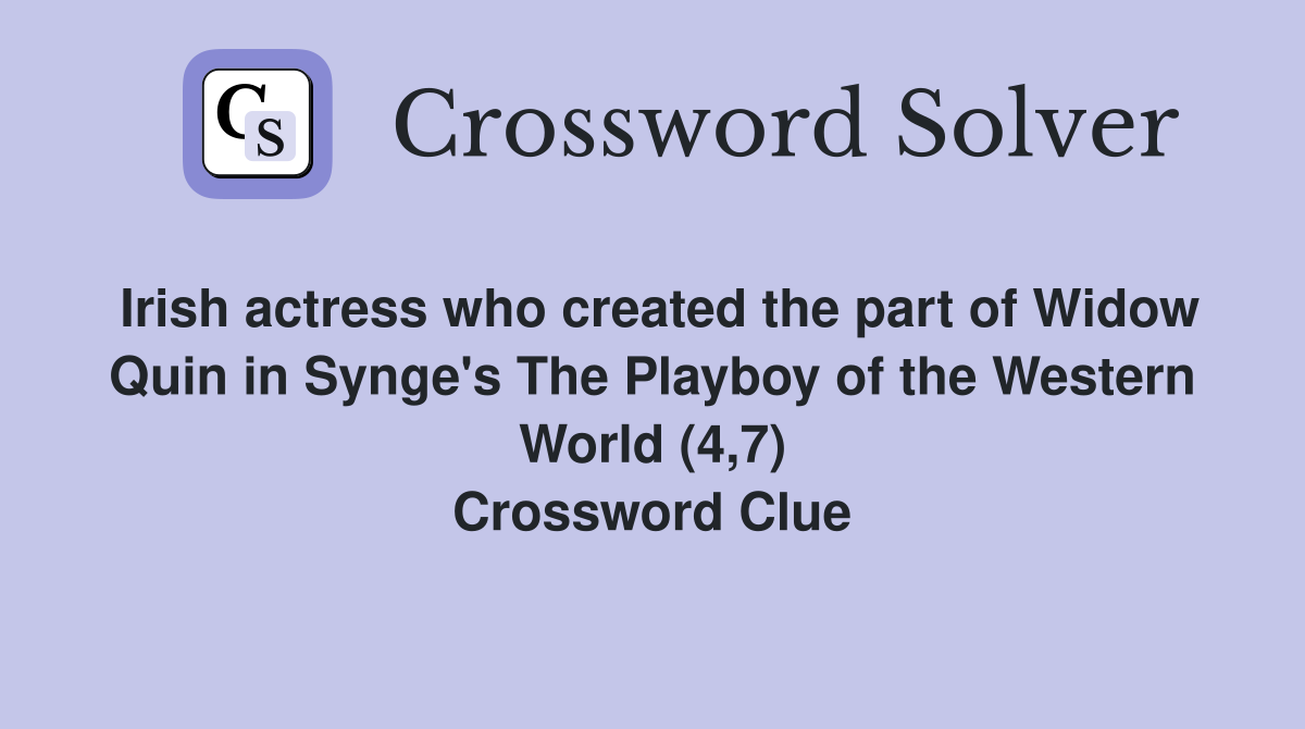 Irish actress who created the part of Widow Quin in Synge #39 s The Playboy