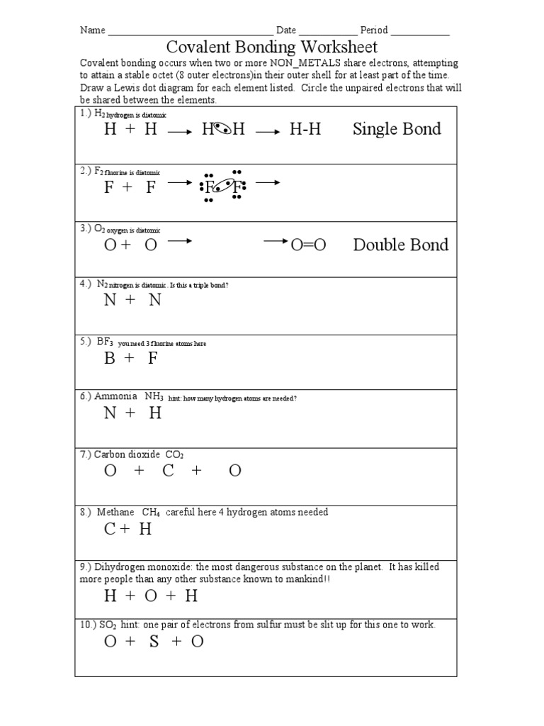 Free Printable Covalent Bonding Worksheets Worksheets Library