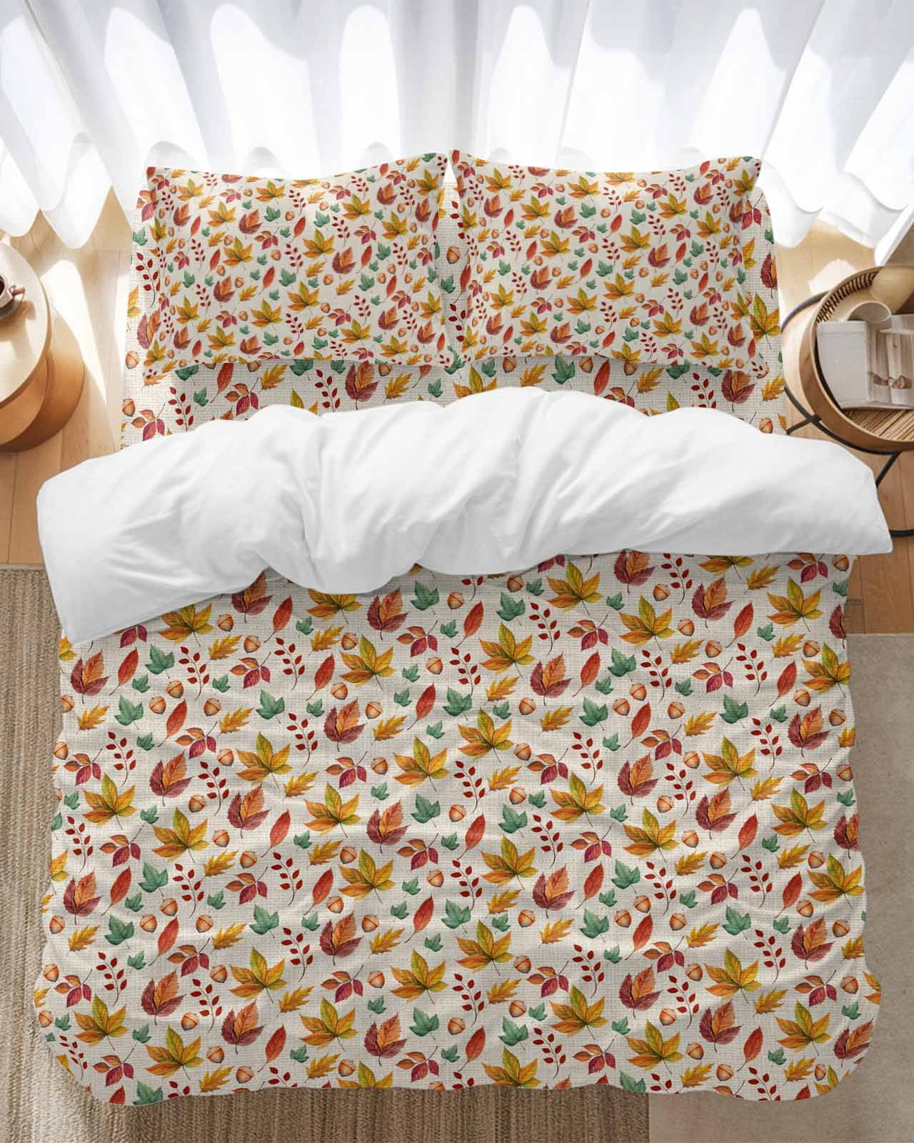 Fall Maple Leaf Bedding Duvet Cover Set Queen Size 4 Pieces Watercolor