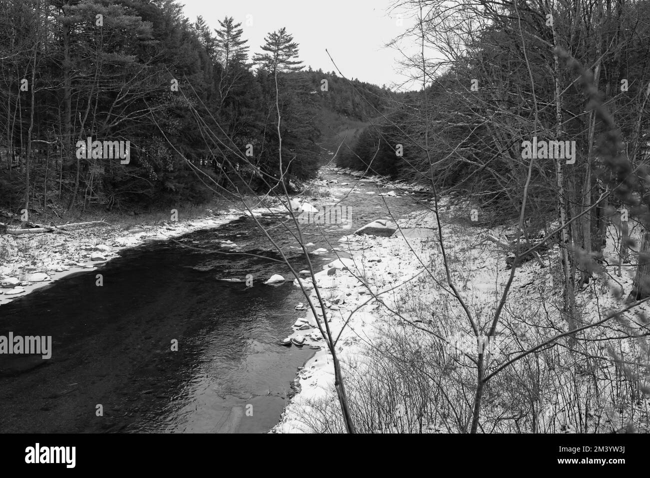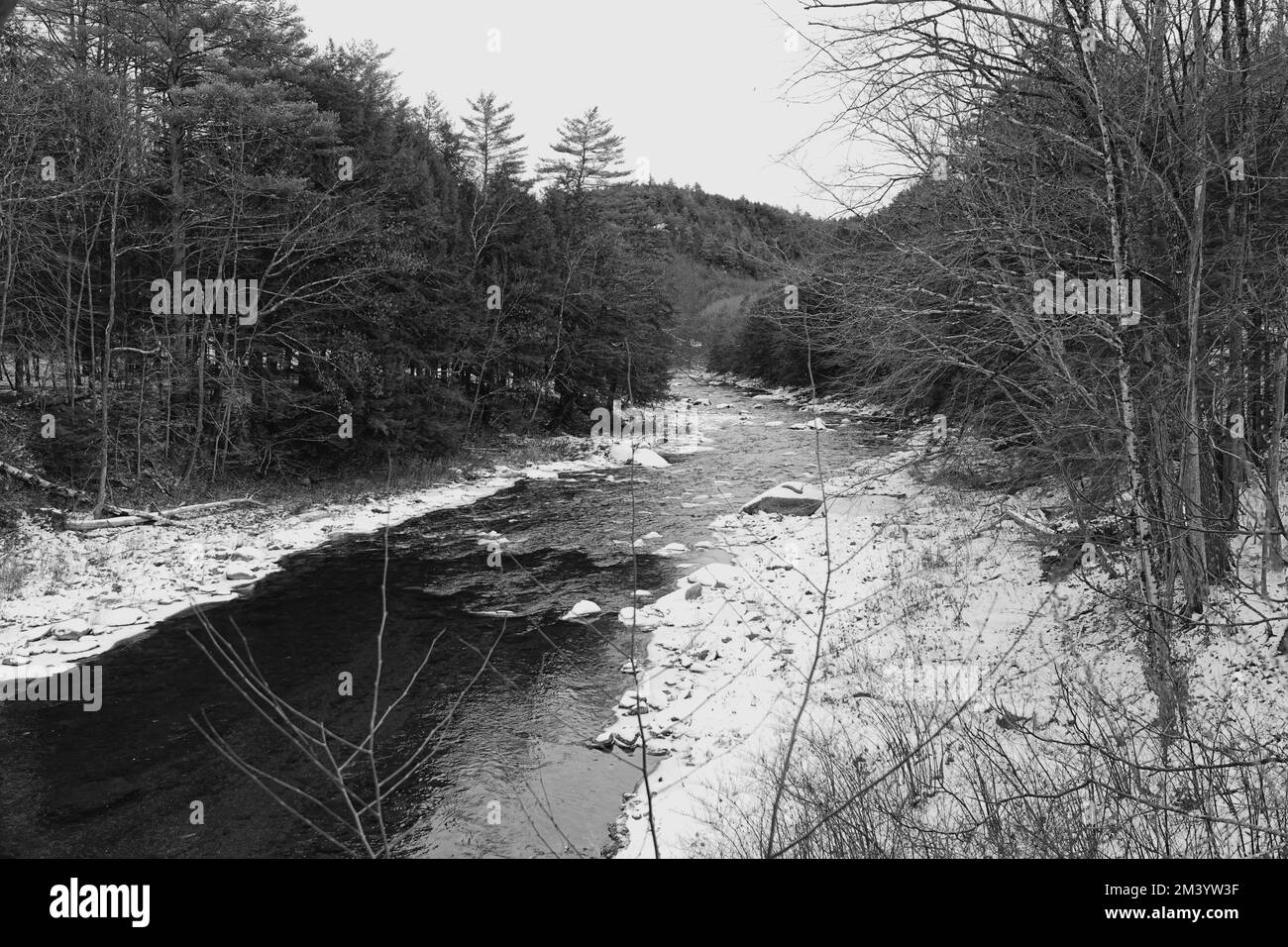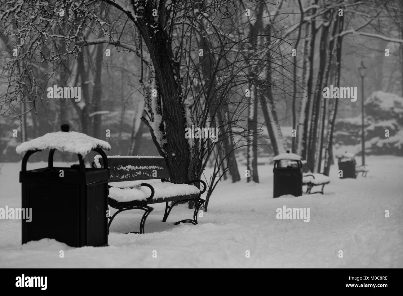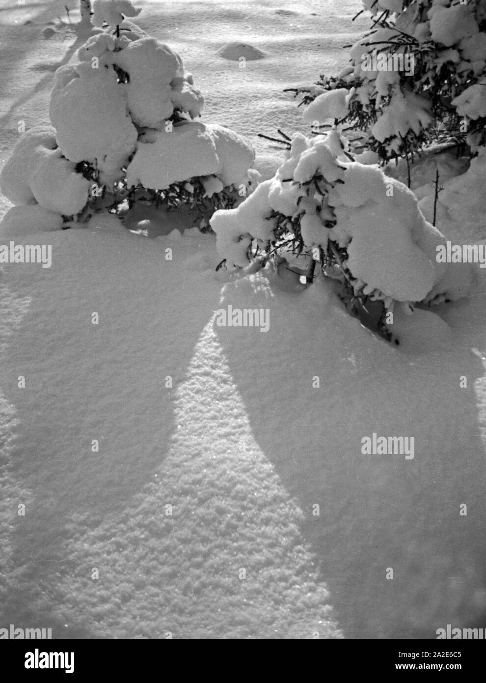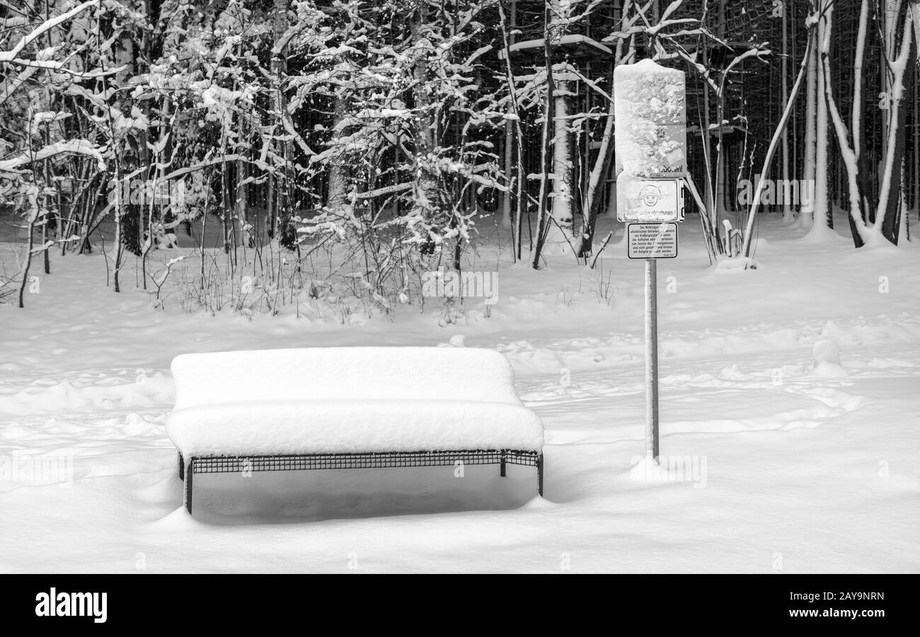 Snow covered trees christmas in Black and White Stock Photos Images