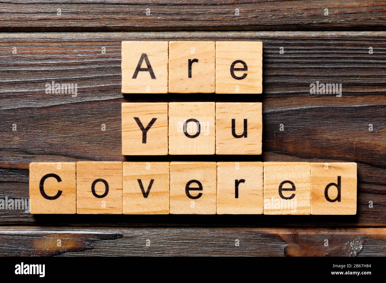 are you covered word written on wood block are you covered text on